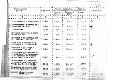 Definitely some interesting things here, like smoke launchers and Notek-like headlights for Soviet tanks, as well as two very vague tank prototypes, but the most interesting thing is the poor readiness of documentation for new tanks. The fancy new T-34 and KV only have their repair and maintenance instructions 30% complete by the start of the war, and even the T-40 amphibious tank has its (presumably much simpler) instructions 40% complete, with all of those due for completion in November of 1941. The situation at the repair depots isn't much better either, with instructions for medium repairs also not scheduled for completion until November, and not for lack of funding. It's no wonder that new Soviet tanks showed poor reliability in the early days of the war.